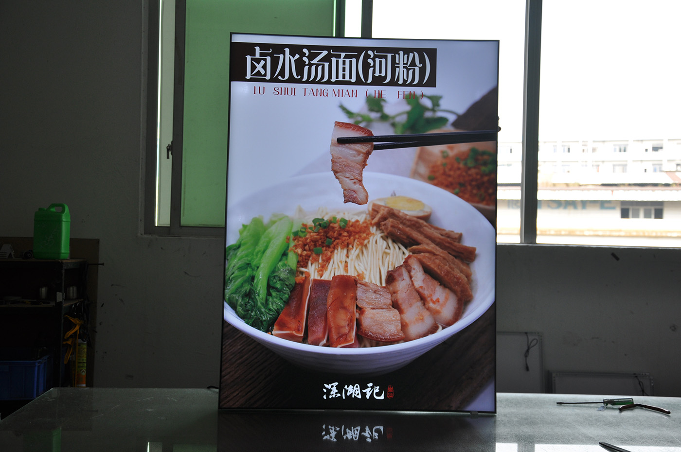 海晨为深湖记制定了整套的解决方案,其中不仅仅只是有灯箱的部分,而是包括了整个店面需要用到的一切广告展示用品。从设计、生产、安装到售后服务一体化,为客户解决问题的整体解决方案。