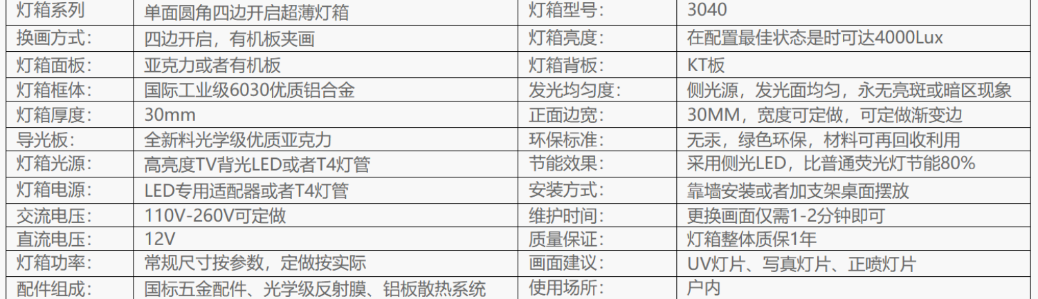 单面圆角超薄灯箱-3040